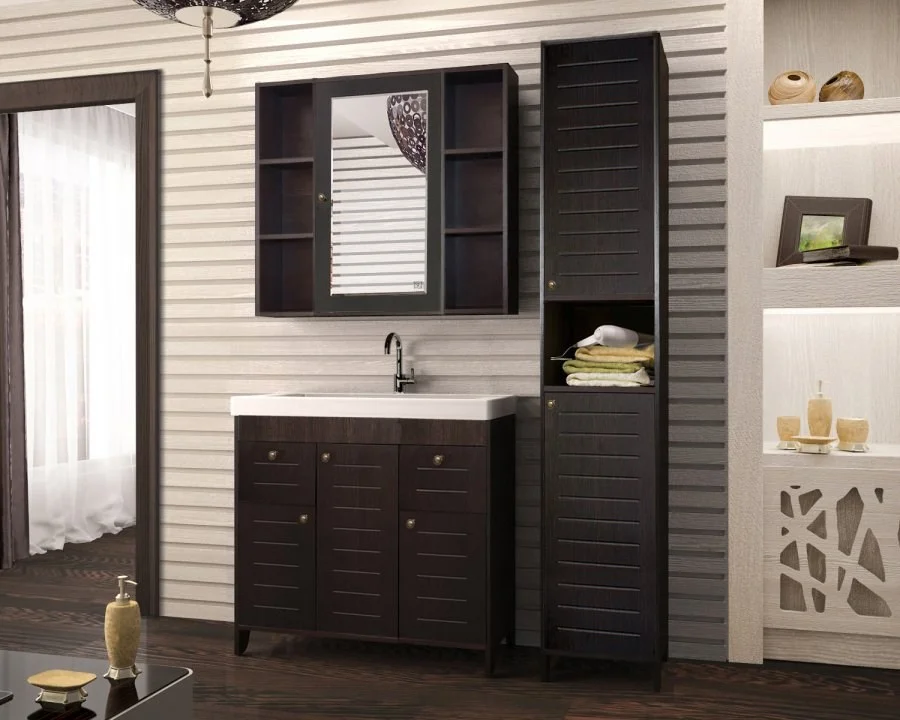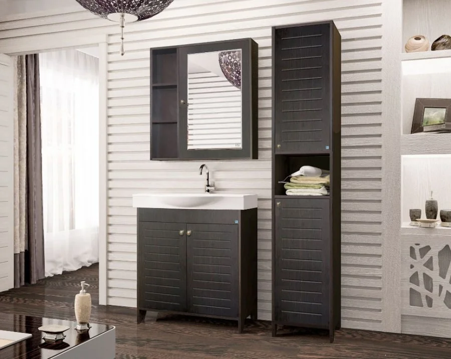 Колонна напольная бренда "Style Line" коллекции "Кантри" имеет оригинальные ручки "под бронзу", удобную нишу и петли на дверцах с механизмом плавного закрывания, декоративную фрезеровку фасадов. Сборка изделия с помощью эксцентриковых стяжек Hafele; все материалы полностью влагостойкие