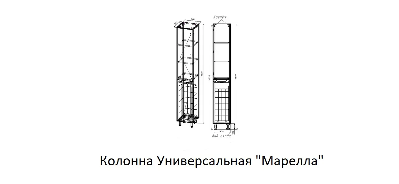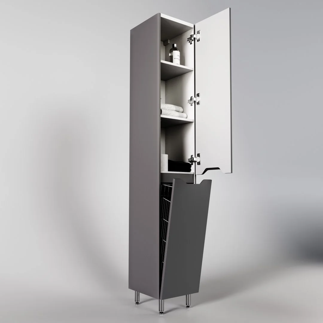 Шкаф-пенал Style Line Марелла с корзиной, Люкс антискрейтч серый, PLUS СС-00002420