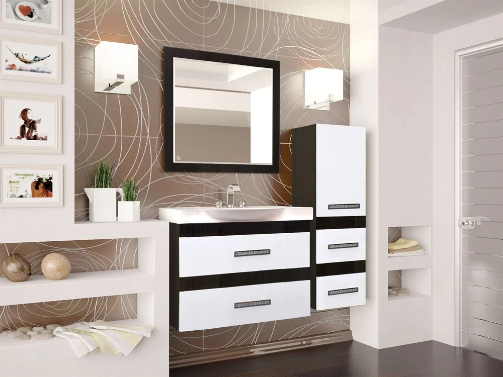 Колонна подвесная бренда "Style Line" коллекции "Сакура". Фурнитура - хром. Сочетание белого глянца и венге в данной коллекции придает колонне строгость и уникальность форм