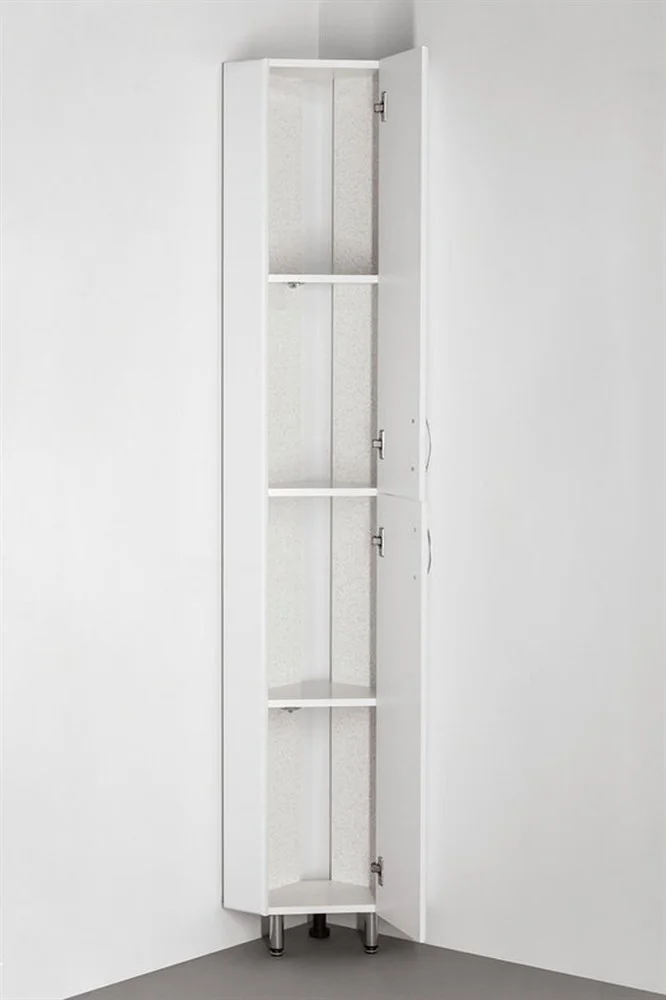 Колонна напольная угловая бренда "Style Line" Эко Стандарт 30*30. Фурнитура - хром, эксклюзивный декор "Луино" - ламинация внутренней стороны изделия. Направляющие полного выдвижения Hettich; сборка изделия с помощью эксцентриковых стяжек Hafele; все материалы полностью влагостойкие