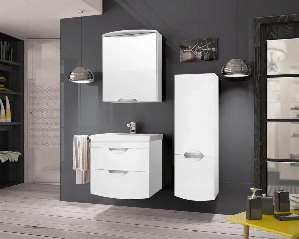 Колонна подвесная бренда "Style Line" коллекции "Жасмин 2" со стильными врезными ручками. Фурнитура - хром. Доводчики "Hettich" обеспечивают плавность и бесшумность хода, высокую надежность и прочность. Боковины изделий в пленке в цвет фасадов