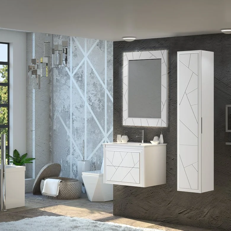 Коллекцию ЛУИДЖИ украшают сложная фрезеровка фасадов строгими линиями и декоративная подсветка по периметру зеркала, которое оснащено сенсорным выключателем. Тумбы дополняются современными ультратонкими керамическими слим-раковинами в размерах 70 см и 90 см.