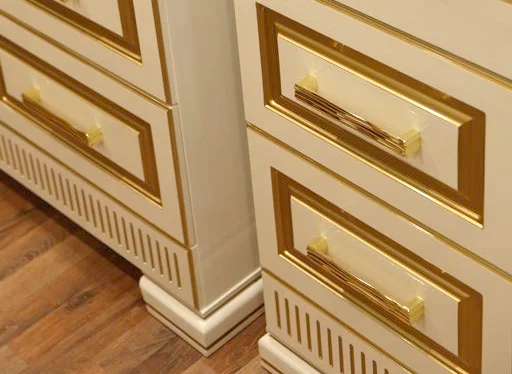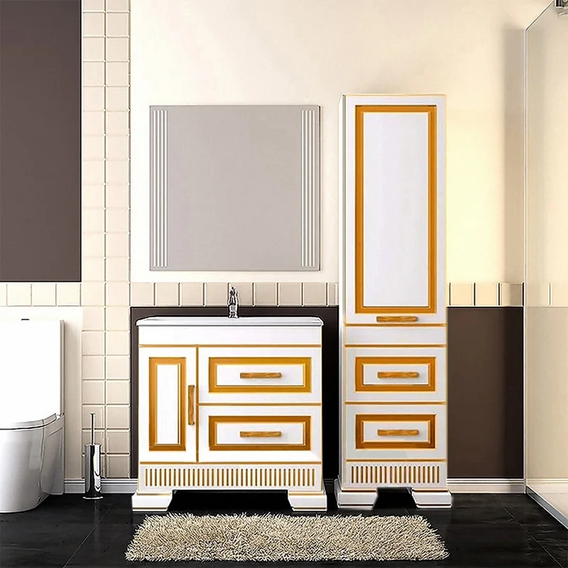 Современная и шикарная мебель для ванной комнаты ОНИКС изготавливается из высококачественного МДФ с глянцевым покрытием и декорируется золотой и серебристой патиной.