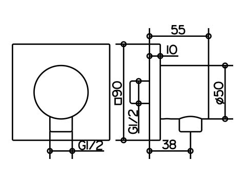 Шланговое подключение Keuco IXMO 59547 010002 DN 15 с квадратной розеткой 59547010002