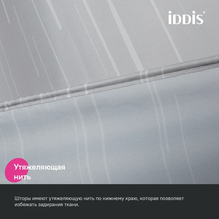 • Штора имеет утяжеляющую нить по нижнему краю, которая позволяет избежать задирания ткани.