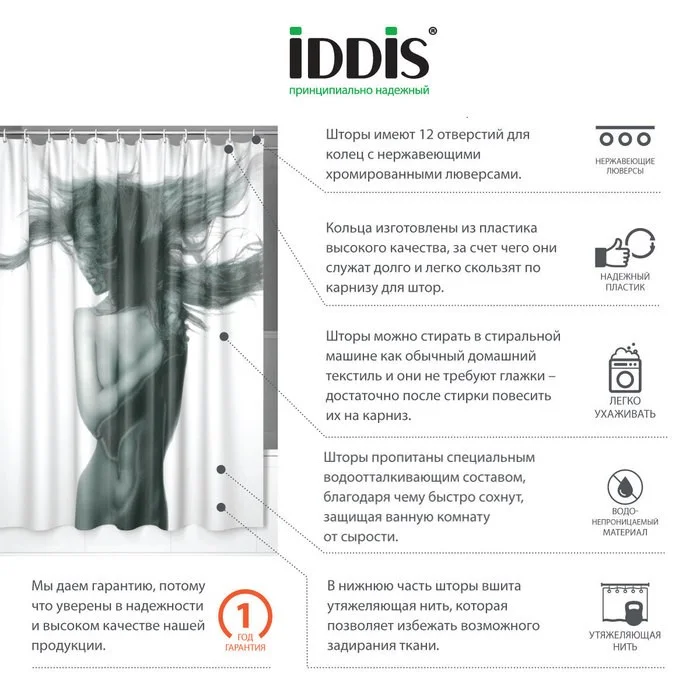 Штора для ванны IDDIS Basic 200x180 (B27P218i11)