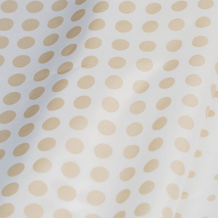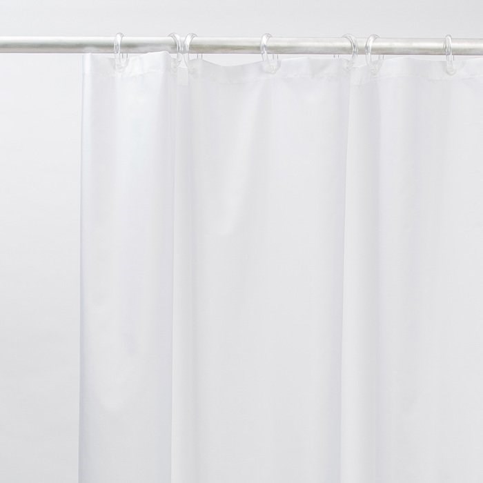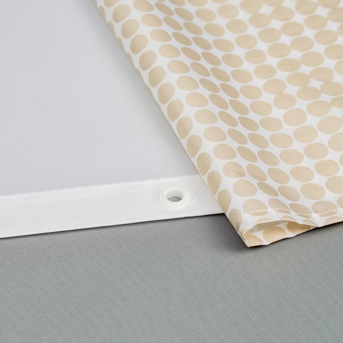 100% Полиэстер, плотность - 100 г/м2, размер 200-180 cм, пропитка Waterproof PA, пластиковые белые люверсы, 12 колец в комплекте, форма "O", прозрачные.Упаковка ПВХ пакет.