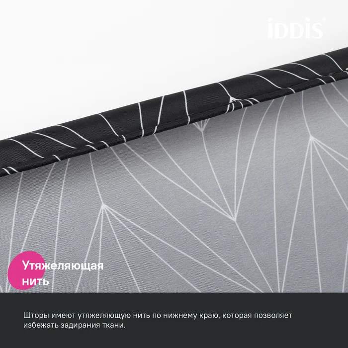 • Штора имеет утяжеляющую нить по нижнему краю, которая позволяет избежать задирания ткани.