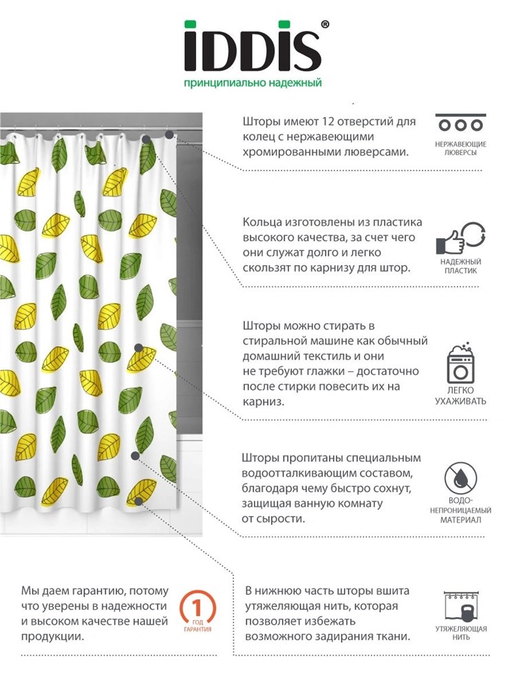 Штора для ванны Iddis Bean Leaf 200P24RI11 -->