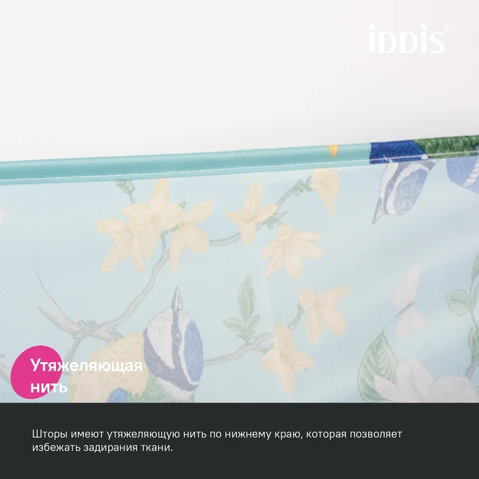 • Штора имеет утяжеляющую нить по нижнему краю, которая позволяет избежать задирания ткани.