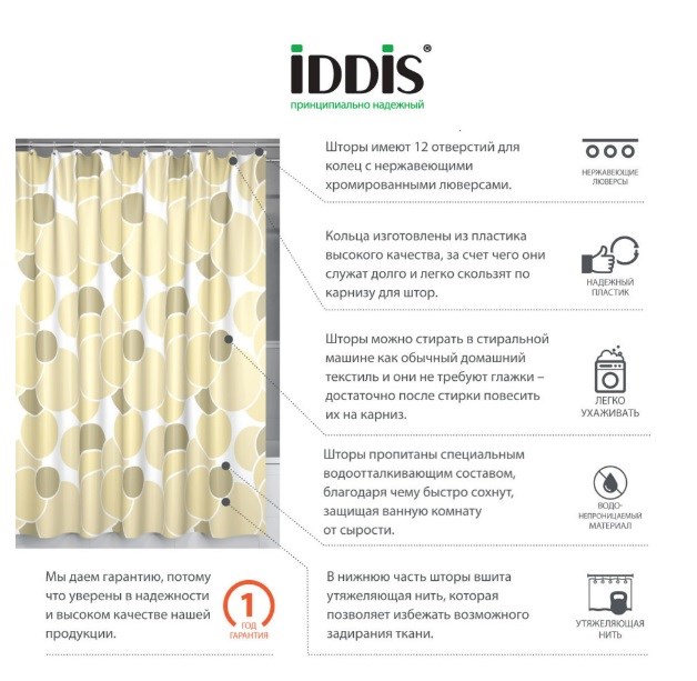 Штора для ванны Iddis Cream Balls 230P24RI11 -->