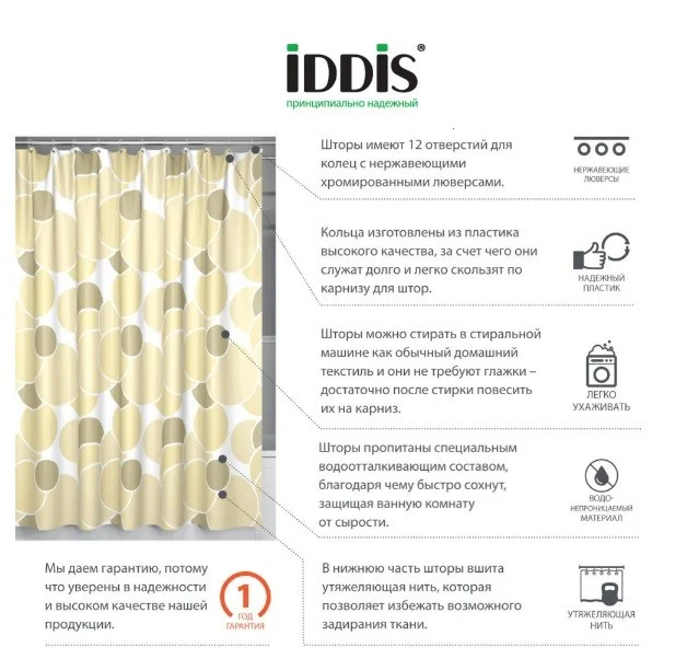 Штора для ванной Iddis Cream Balls 230P24RI11