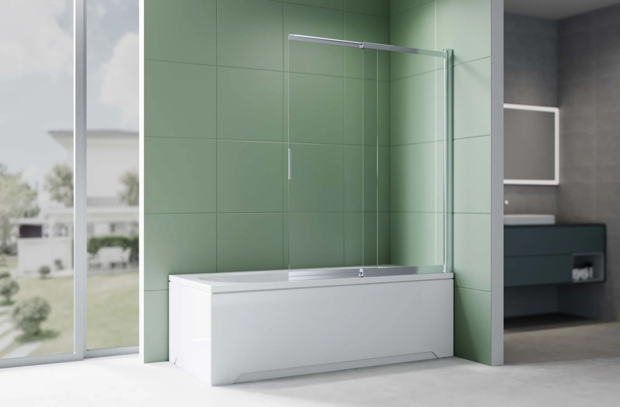 Двухэлементная раздвижная шторка для ванны — простое и очень удобное решение для небольших ванных комнат. Шторка совмещает в себе все преимущества раздвижной и поворотной шторки: шторка состоит из двух полотен, которые легко раздвигаются, обеспечивая комфортный доступ к ванне, и при этом еще и поворачиваются внутрь, дополнительно раздвигая пространство - максимум удобства, минимум занимаемого места. Прочная поворотная шторка из закаленного стекла толщиной 5 мм надежно защищает от брызг, визуально расширяет пространство и служит долгие годы.