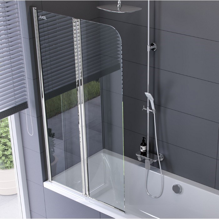 Двухсекционная поворотная шторка для ванны с двойной защитой стекла.