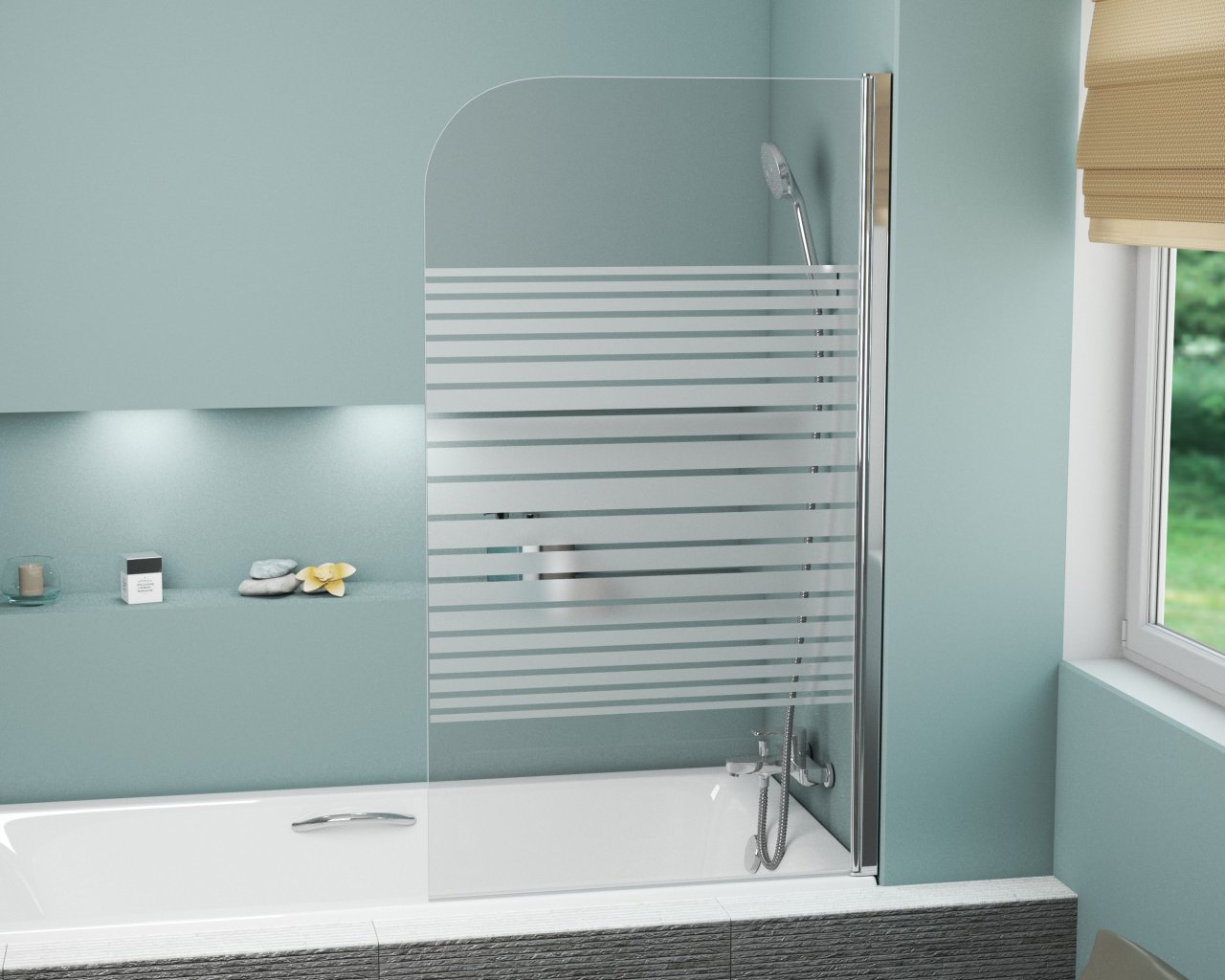 Шторка на ванну GROSSMAN GR-100P (140x80) алюминиевый профиль, стекло ПОЛОСАТОЕ 6мм