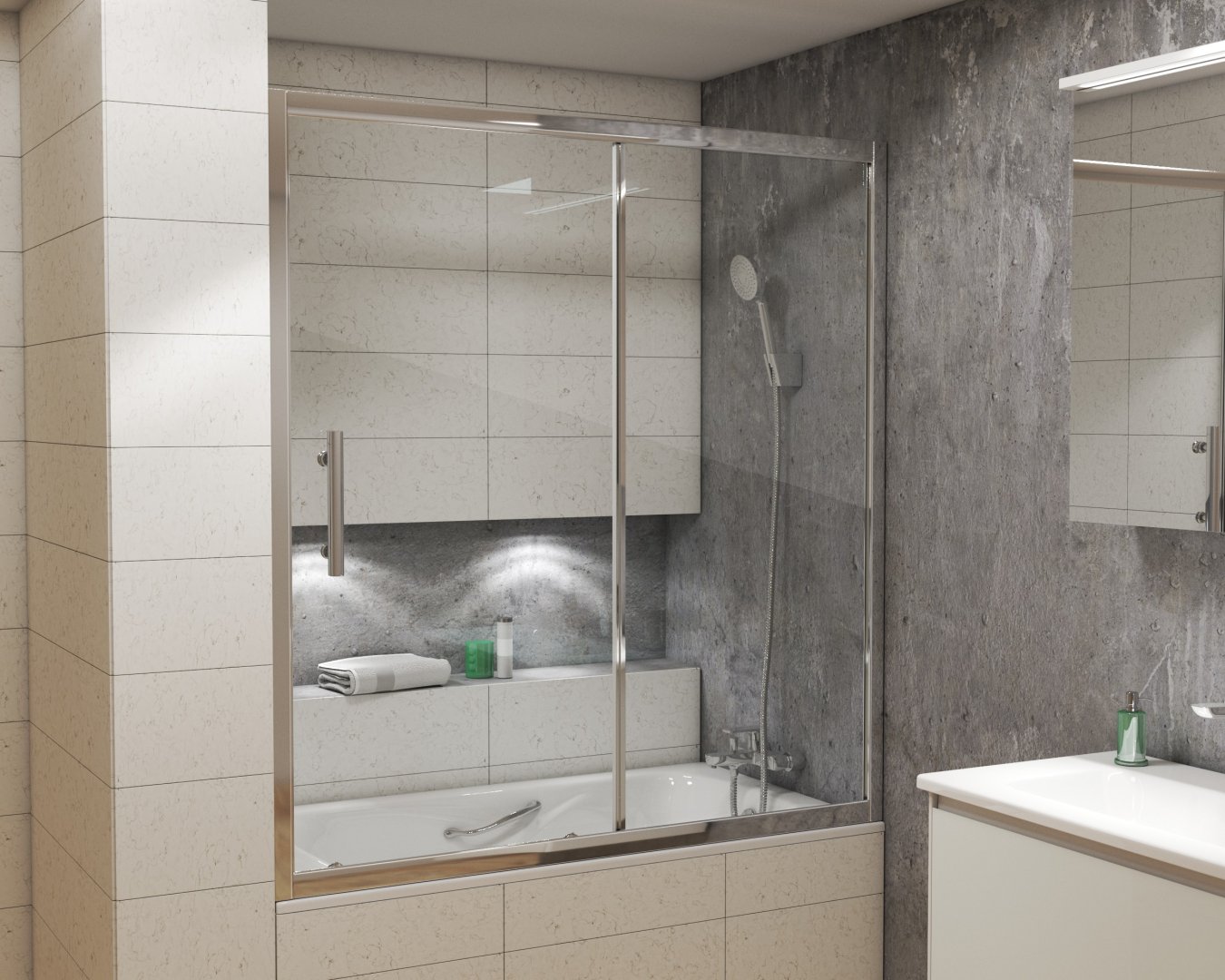 Шторка на ванну GROSSMAN GR-150/2 (140x150) Профиль алюминиевый, стекло прозрачное 6мм