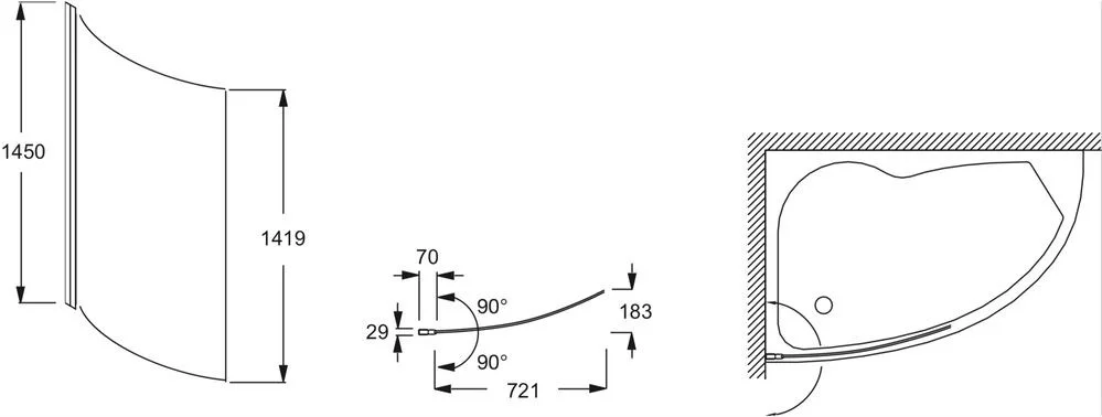 Изогнутая реверсивная шторка для ванны Micromega Duo