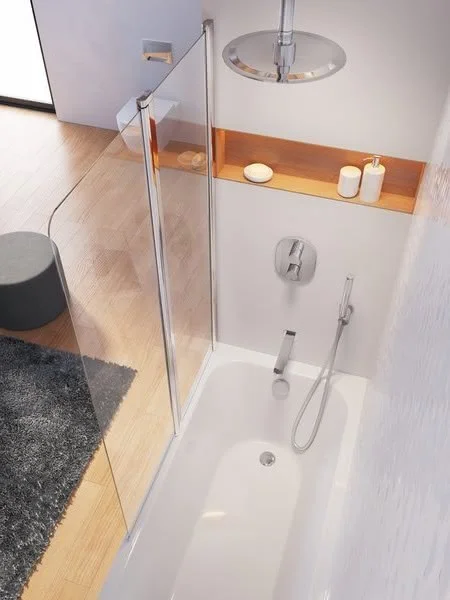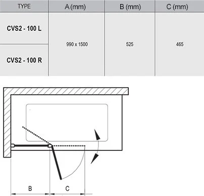 Размер: 99х150см. Шторка состоит из одной неподвижной и одной подвижной части, которая поворачивается как вовнутрь, так и наружу.