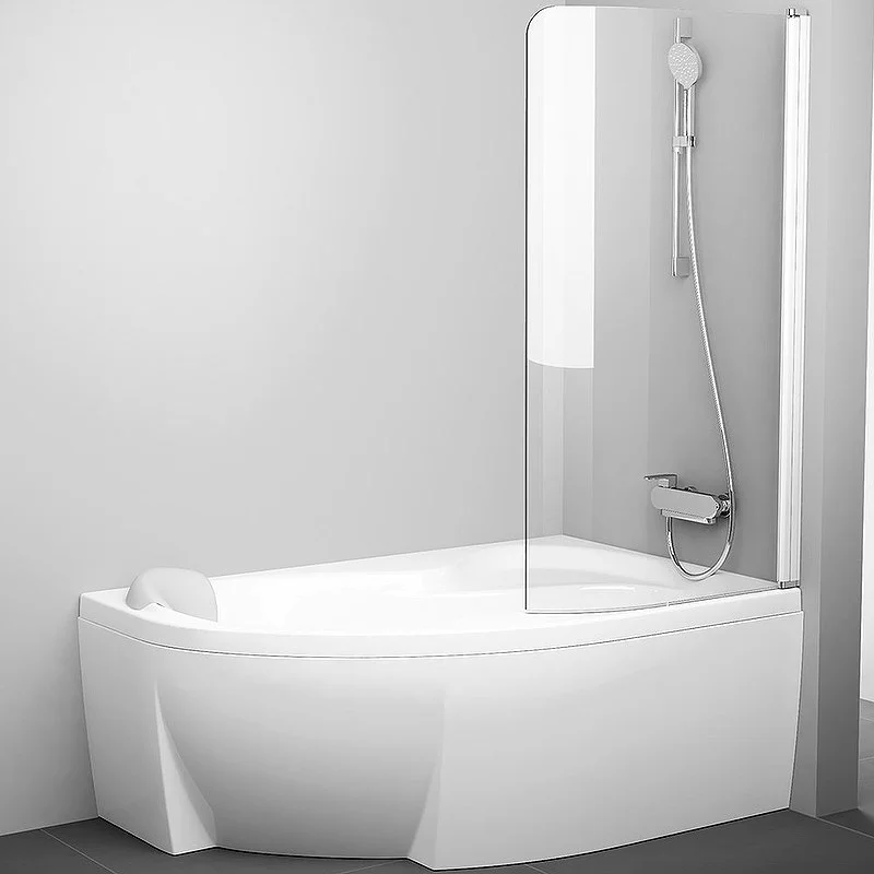 Размер: 100х150см. Шторка для ванны поворотная, одноэлементная. Может поворачиваться к ванне, а также в противоположную сторону к наружной стене.