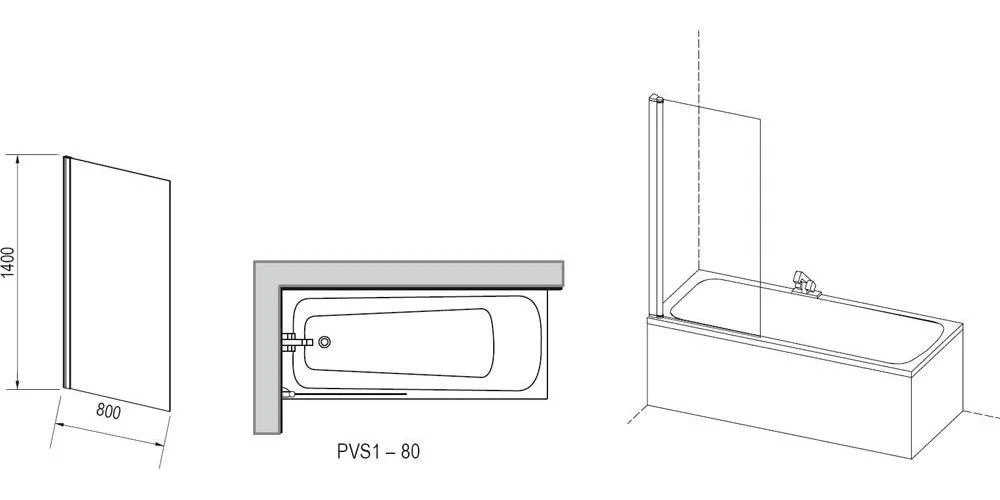 Штора устанавливается на прямоугольные ванны (Classic, Sonata, Campanula II, Vanda II и Lilia) или на какую-либо классическую прямоугольную ванну с ровным передним бортом. Стандартная высота шторы 1400 мм. Повернув РVS1 на 180°, получите Л/П варианты входа. Возможно изготовление атипичной шторы для ванны.