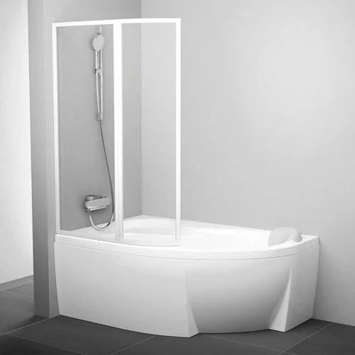Штора состоит из неподвижной и подвижной части, поворачивающейся вовнутрь ванны.