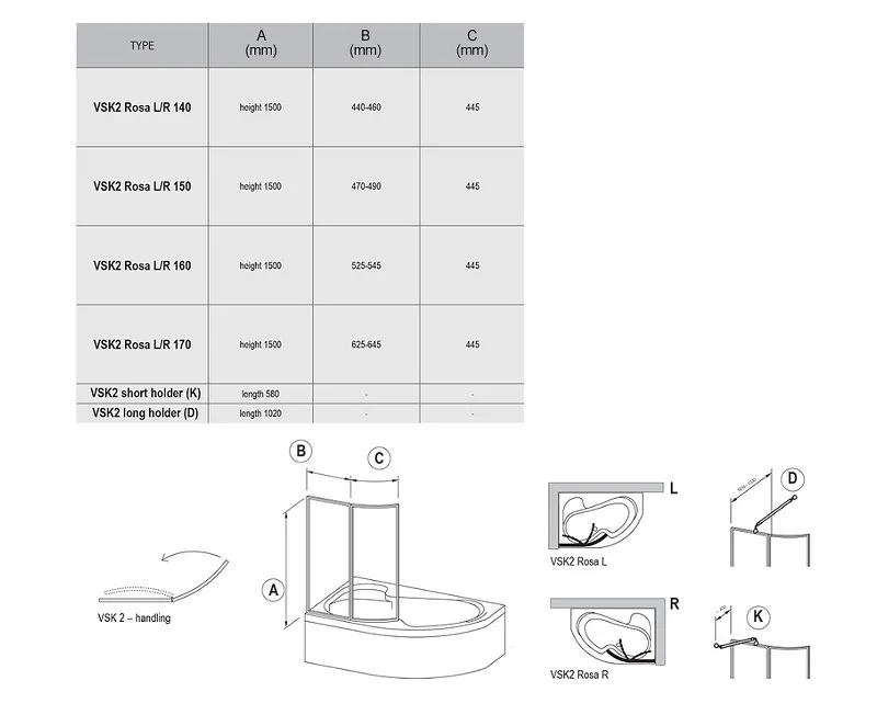 Для лучшей фиксации штору VSK2 Rosa рекомендуем укрепить с помощью короткого или длинного держателей VSK2, которые необходимо докупить отдельно – не входят в комплектацию изделия.