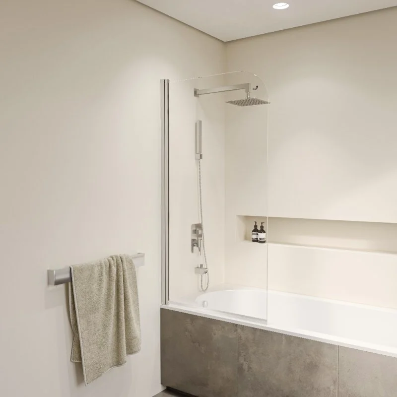 Высота стеклянной шторки составляет 1500 мм, что идеально подходит для большинства ванных комнат. Она максимально защитит вас и вашу ванную от брызг и воды.