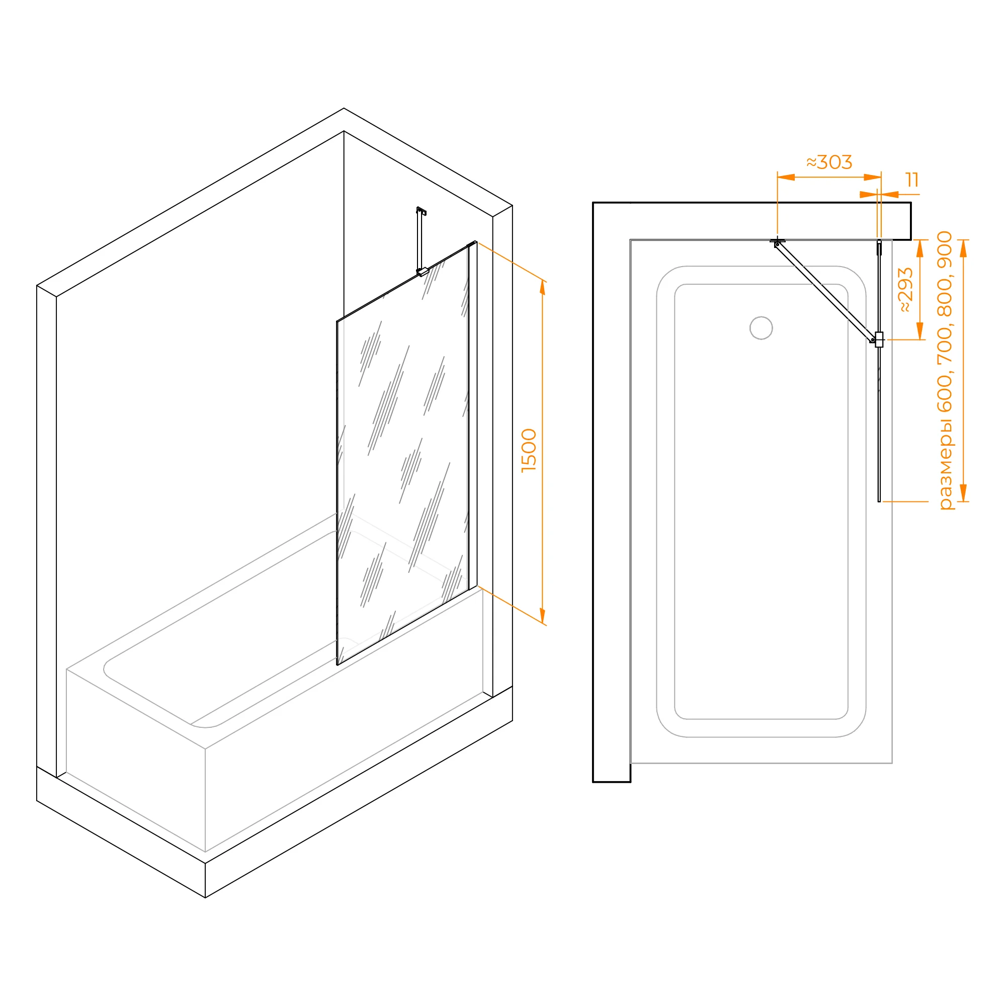 Прозрачное стекло и хромированный профиль позволяют шторке органично сочетаться с любым стилем и дизайном вашей ванной комнаты. Высота стеклянной шторки составляет 1500 мм, что соответствует стандарту и обеспечивает защиту от брызг воды во время принятия душа.