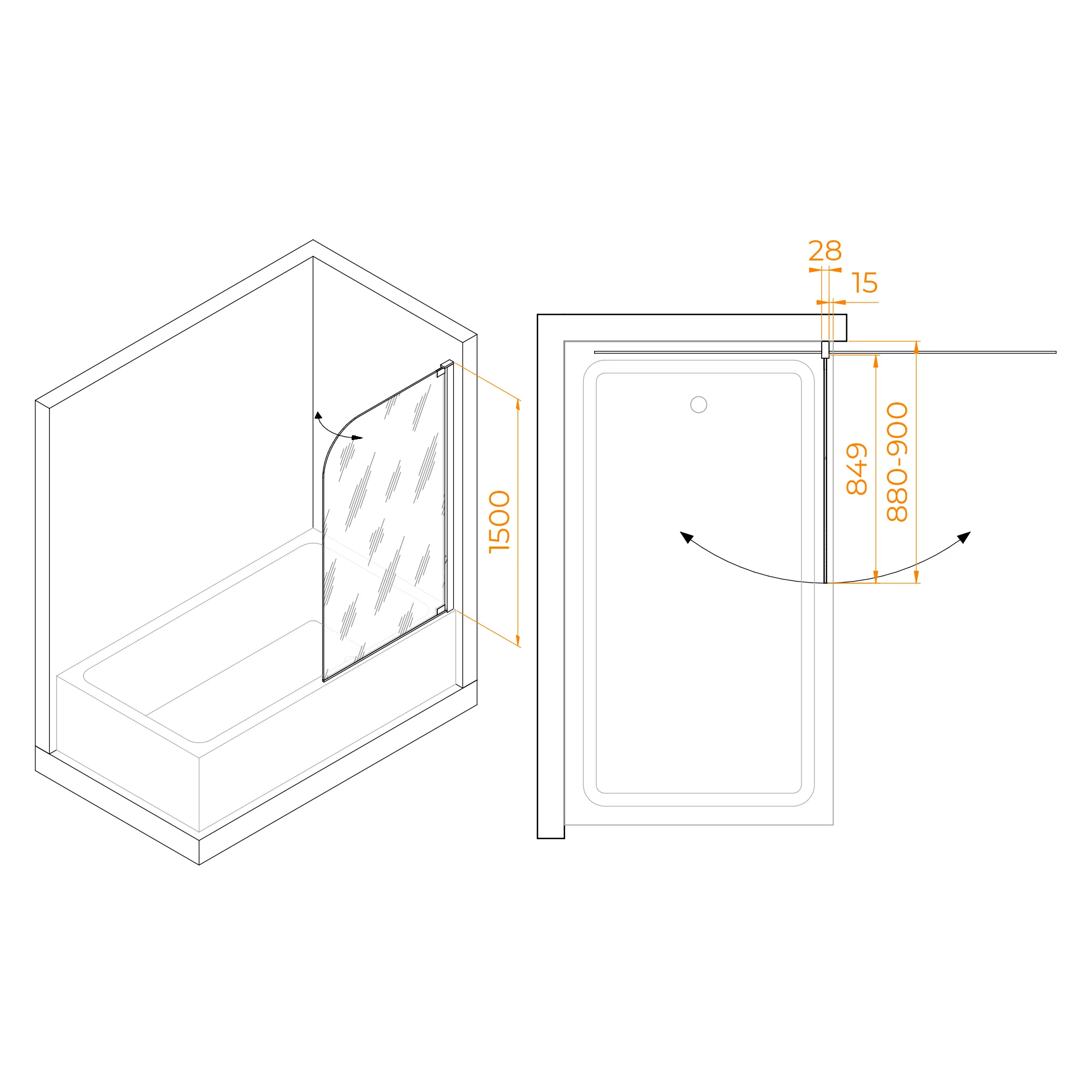 Высота шторки составляет 1500 мм, что позволяет ей легко справляться даже с высокими стенками ванны. Конструкция створки шторки маятниковая, что позволяет легко и быстро открывать и закрывать ее.