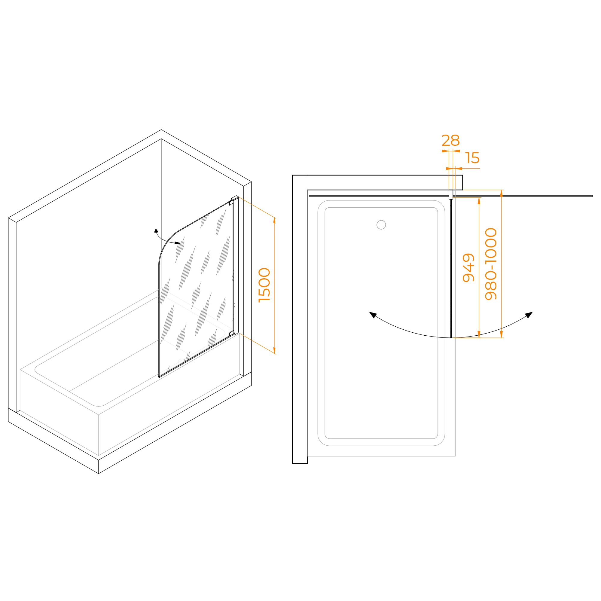 Высота шторки составляет 1500 мм, что позволяет ей легко справляться даже с высокими стенками ванны. Конструкция створки шторки маятниковая, что позволяет легко и быстро открывать и закрывать ее.