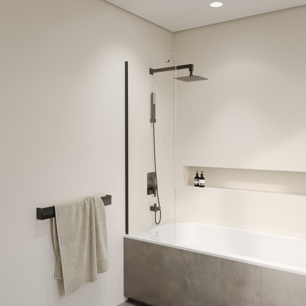 Цвет профиля - черный, в сочетании с прозрачным стеклом создают элегантный и роскошный внешний вид, который станет гармоничным дополнением любого интерьера ванных комнат.