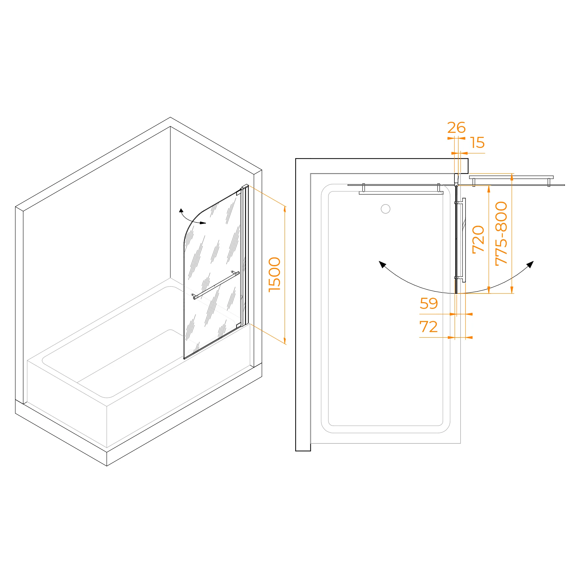 Стеклянная шторка на ванну RGW SC-06 обладает высотой 1500 мм, что позволяет легко защититься от брызг воды во время купания. Конструкция створки шторки - маятниковые, позволяет шторке открываться в обе стороны, что облегчает использование, и вы в любой момент сможете свободно войти или выйти из ванной.