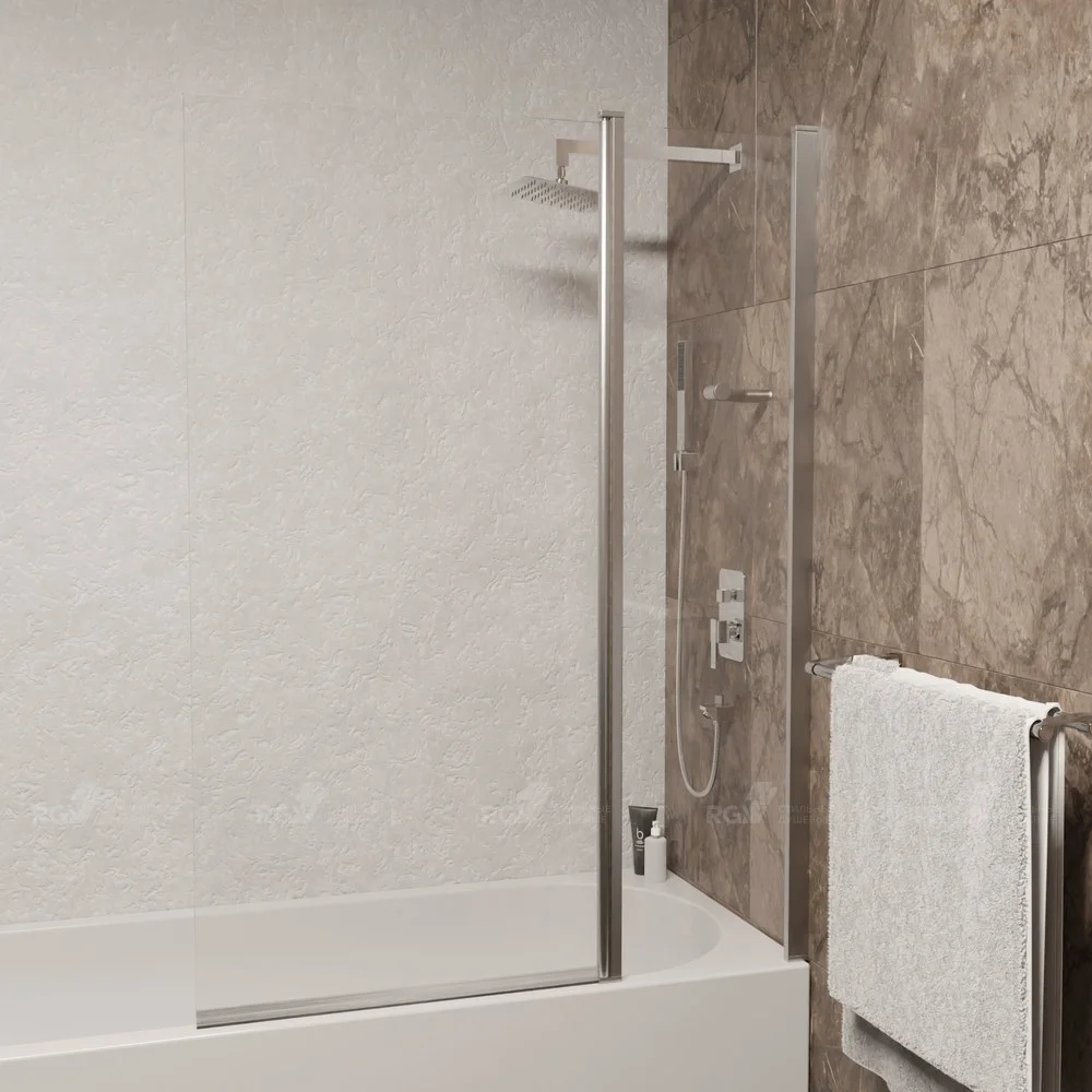 Цвет профиля шторки хром, что придает ей более современный внешний вид. Высота стеклянной шторки 1400 мм, которая идеально подходит для большинства ванн.