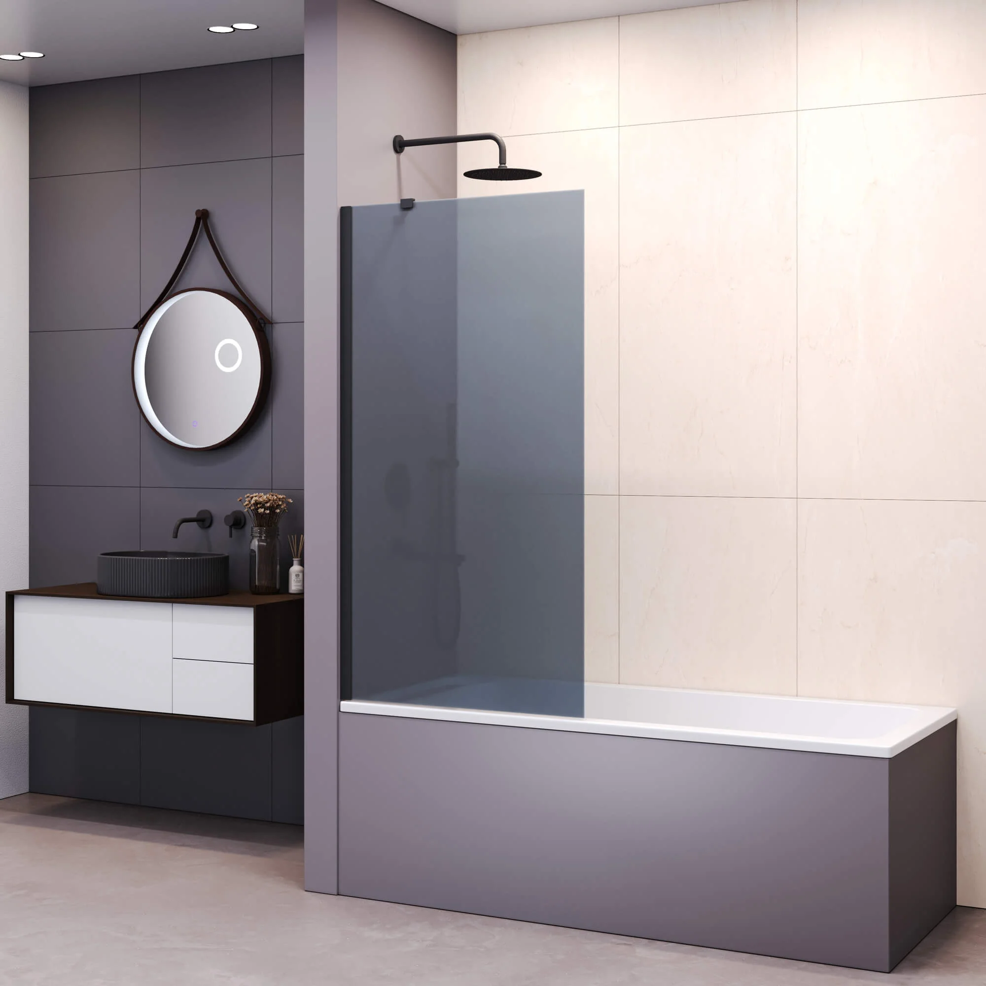 Изготовлена из прозрачного стекла толщиной 6 мм, шторка выполнена с черным анодированным алюминиевым профилем, который придает ей современный и эстетичный вид. Высота стеклянной шторки составляет 1500 мм, что обеспечивает надежную защиту от брызг воды и сохраняет чистоту ванной комнаты.