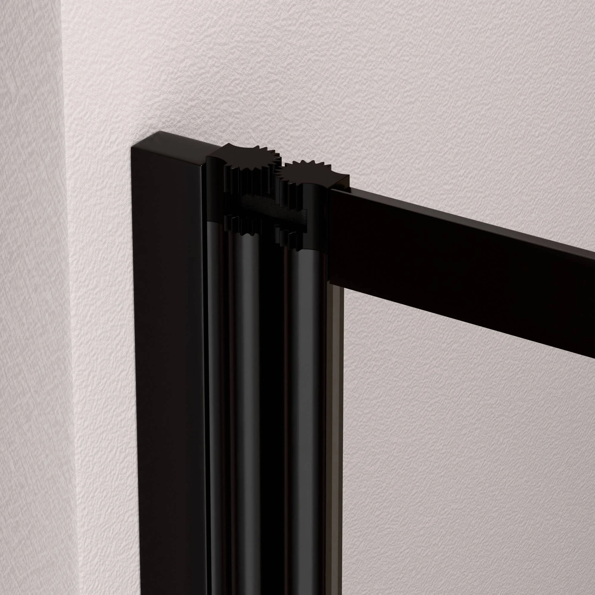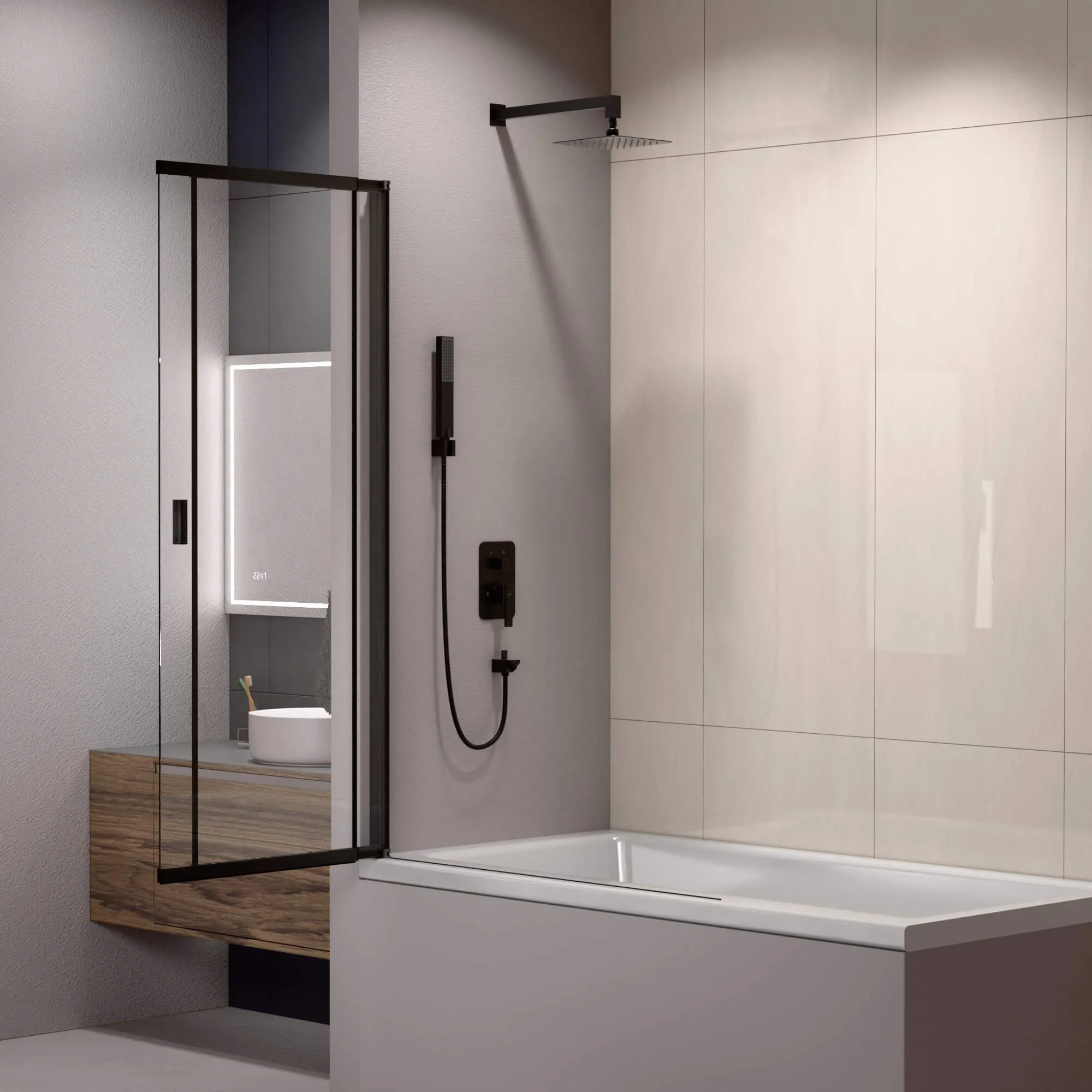 Профиль шторки выполнен в черном цвете, что прекрасно сочетается с любым стилем ванной комнаты. Высота стеклянной шторки составляет 1500 мм, что обеспечивает максимальную защиту от брызг и капель.