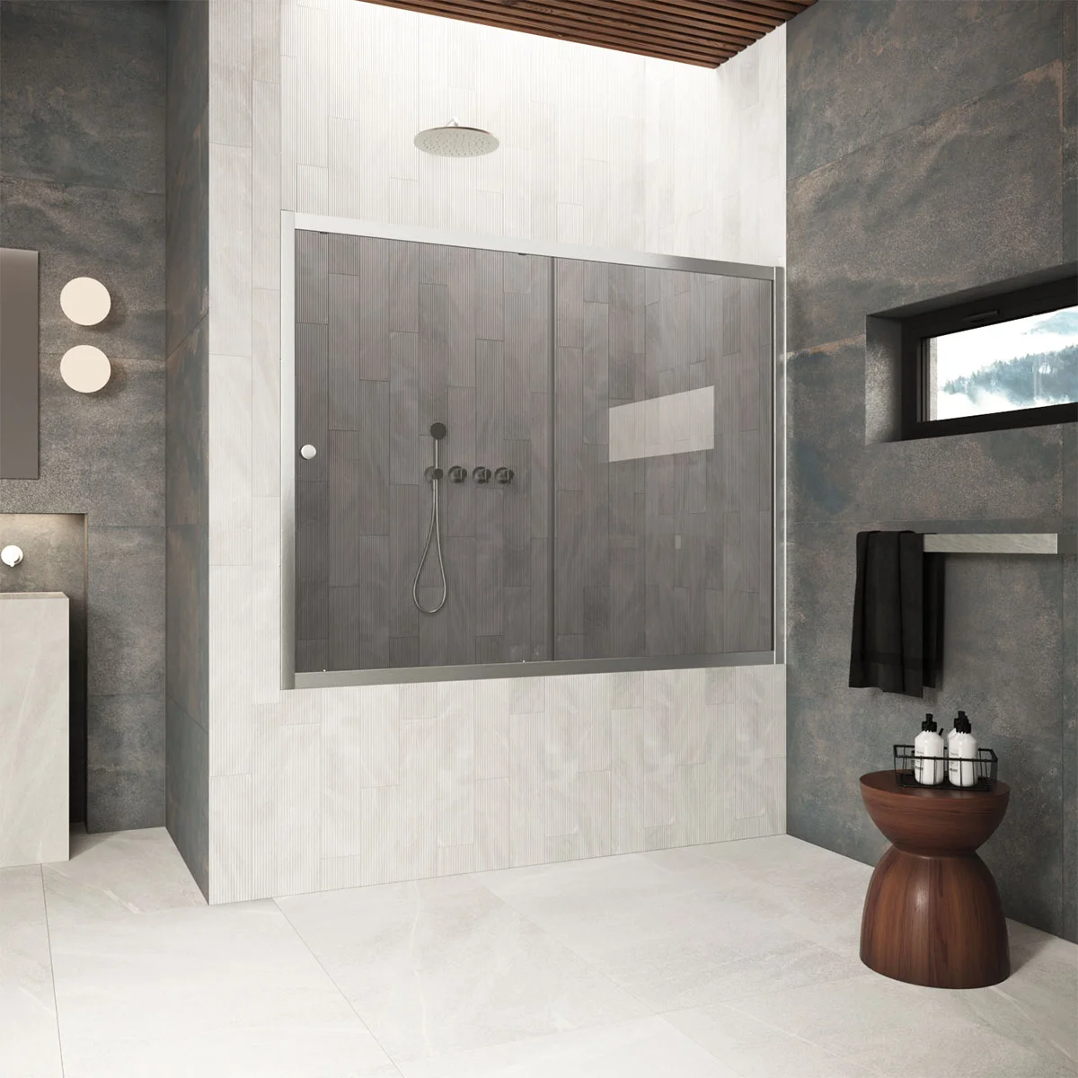 VEGAS-GLASS — это свобода творчества. Сочетайте холодный графит стекла с теплой бронзой профиля или выберите нежный сатин в обрамлении строгого матового хрома. Каждая комбинация станет эксклюзивным решением, подчеркивающим ваш безупречный вкус.
