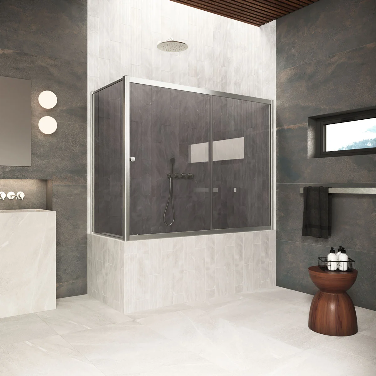 VEGAS-GLASS — это свобода творчества. Сочетайте холодный графит стекла с теплой бронзой профиля или выберите нежный сатин в обрамлении строгого матового хрома. Каждая комбинация станет эксклюзивным решением, подчеркивающим ваш безупречный вкус.