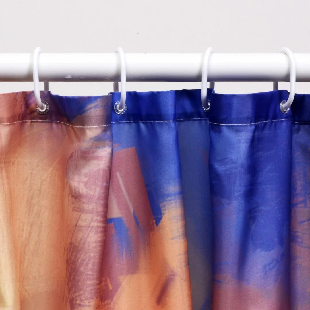 Назначение: Шторка для ванной. Материал: Полиэстер.Монтаж: Пластиковые люверсы. Описание: Размер 1800 х 2000 мм, водоотталкивающая пропитка. Низ шторки оснащен утяжелителем, в комплект входят ластиковые кольца белого цвета, 12 шт. Плотность шторки 90 г/м² Дополнительно: Шторки можно стирать в стиральной машине. Температура не должна превышать 40 градусов.