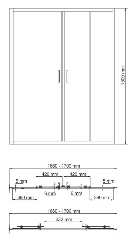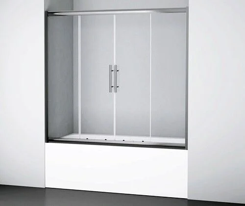 Закаленное прозрачное стекло 6 мм, Раздвижной механизм из нержавеющей стали , Анодированный алюминиевый профиль 45 мм, Регулирующий профиль до 20 мм, Механизм легкой чистки , Силиконовый уплотнитель дверей с магнитным замком, Цвет профиля: серебристый , Двухстворчатая , Силиконовые уплотнители