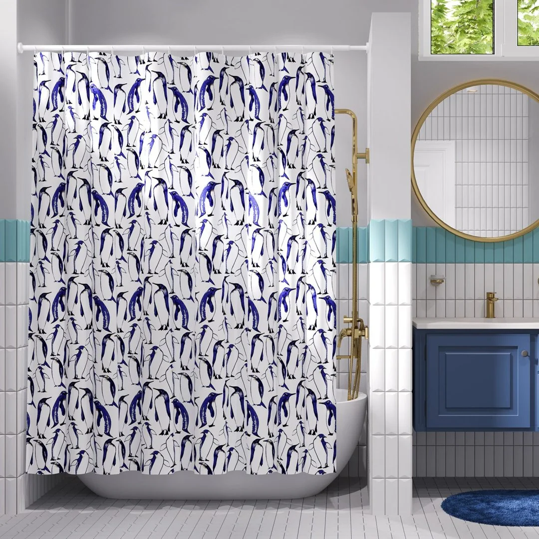 Назначение: Шторка для ванной. Материал: Полиэстер.Монтаж: Пластиковые люверсы. Описание: Размер 1800 х 2000 мм, водоотталкивающая пропитка. Низ шторки оснащен утяжелителем, в комплект входят ластиковые кольца белого цвета, 12 шт. Плотность шторки 90 г/м² Дополнительно: Шторки можно стирать в стиральной машине. Температура не должна превышать 40 градусов.