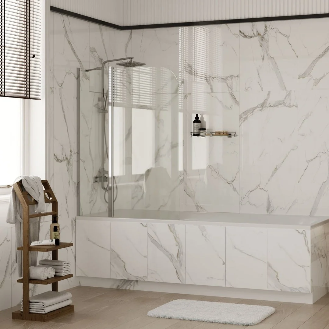 Характеристики:Закаленное прозрачное стекло 6 мм Распашной механизм из сплава металлов с функцией подъема Анодированный алюминиевый профиль 35 мм Регулирующий профиль до 15 мм Возможность правой и левой установки Цвет профиля: серебристый Двухстворчатая Силиконовые уплотнители