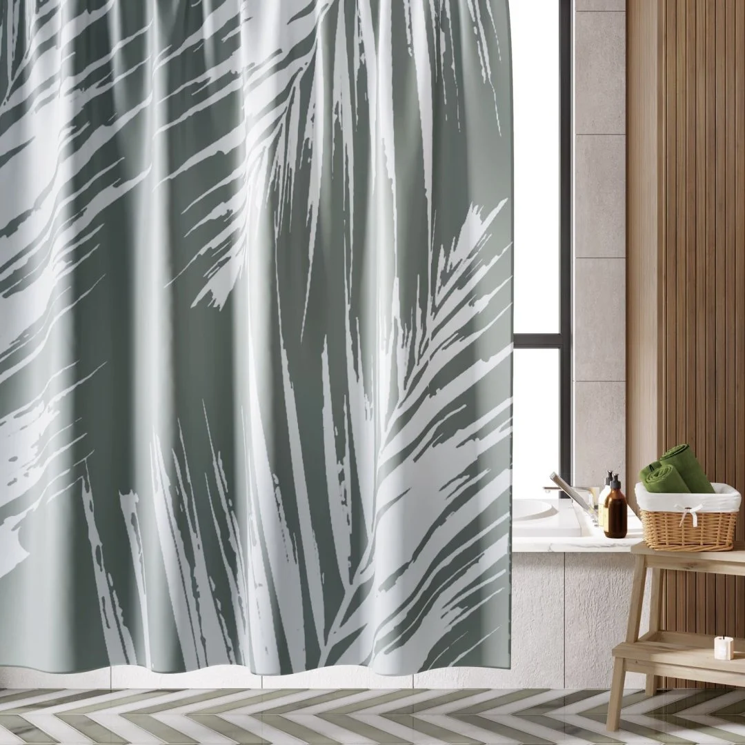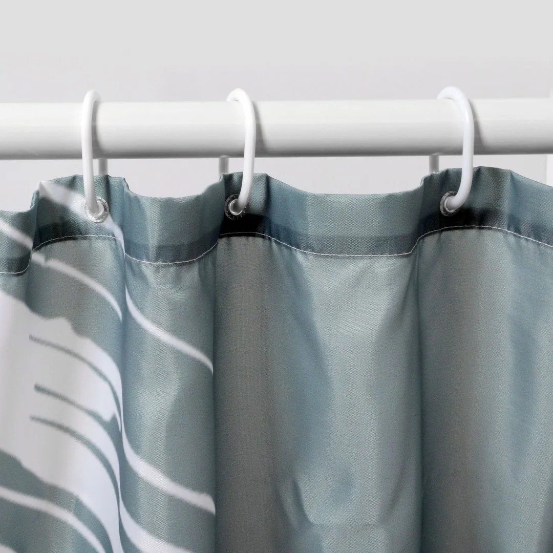 Назначение: Шторка для ванной. Материал: Полиэстер.Монтаж: Пластиковые люверсы. Описание: Размер 1800 х 2000 мм, водоотталкивающая пропитка. Низ шторки оснащен утяжелителем, в комплект входят ластиковые кольца белого цвета, 12 шт. Плотность шторки 90 г/м² Дополнительно: Шторки можно стирать в стиральной машине. Температура не должна превышать 40 градусов.