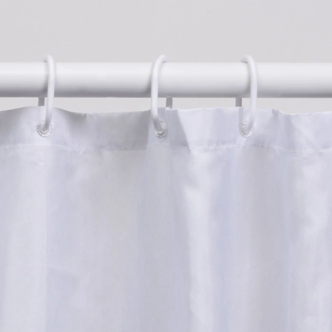 Назначение: Шторка для ванной. Материал: Полиэстер.Монтаж: Пластиковые люверсы. Описание: Размер 1800 х 2000 мм, водоотталкивающая пропитка. Низ шторки оснащен утяжелителем, в комплект входят ластиковые кольца белого цвета, 12 шт. Плотность шторки 90 г/м² Дополнительно: Шторки можно стирать в стиральной машине. Температура не должна превышать 40 градусов.