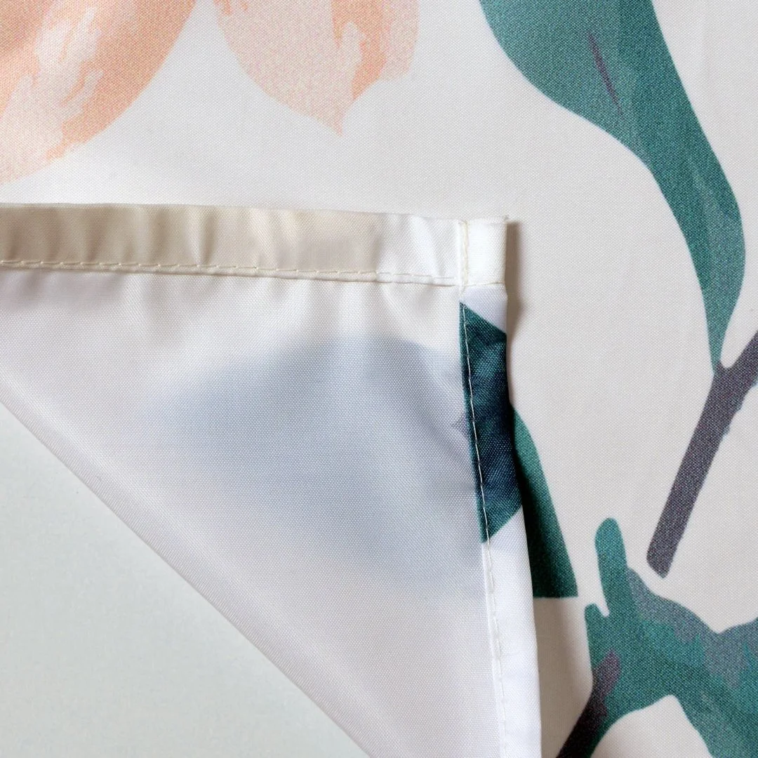 Назначение: Шторка для ванной. Материал: Полиэстер.Монтаж: Пластиковые люверсы. Описание: Размер 1800 х 2000 мм, водоотталкивающая пропитка. Низ шторки оснащен утяжелителем, в комплект входят ластиковые кольца белого цвета, 12 шт. Плотность шторки 90 г/м² Дополнительно: Шторки можно стирать в стиральной машине. Температура не должна превышать 40 градусов.