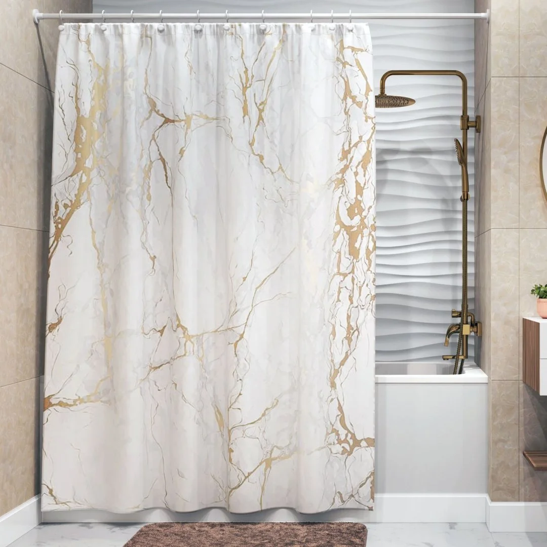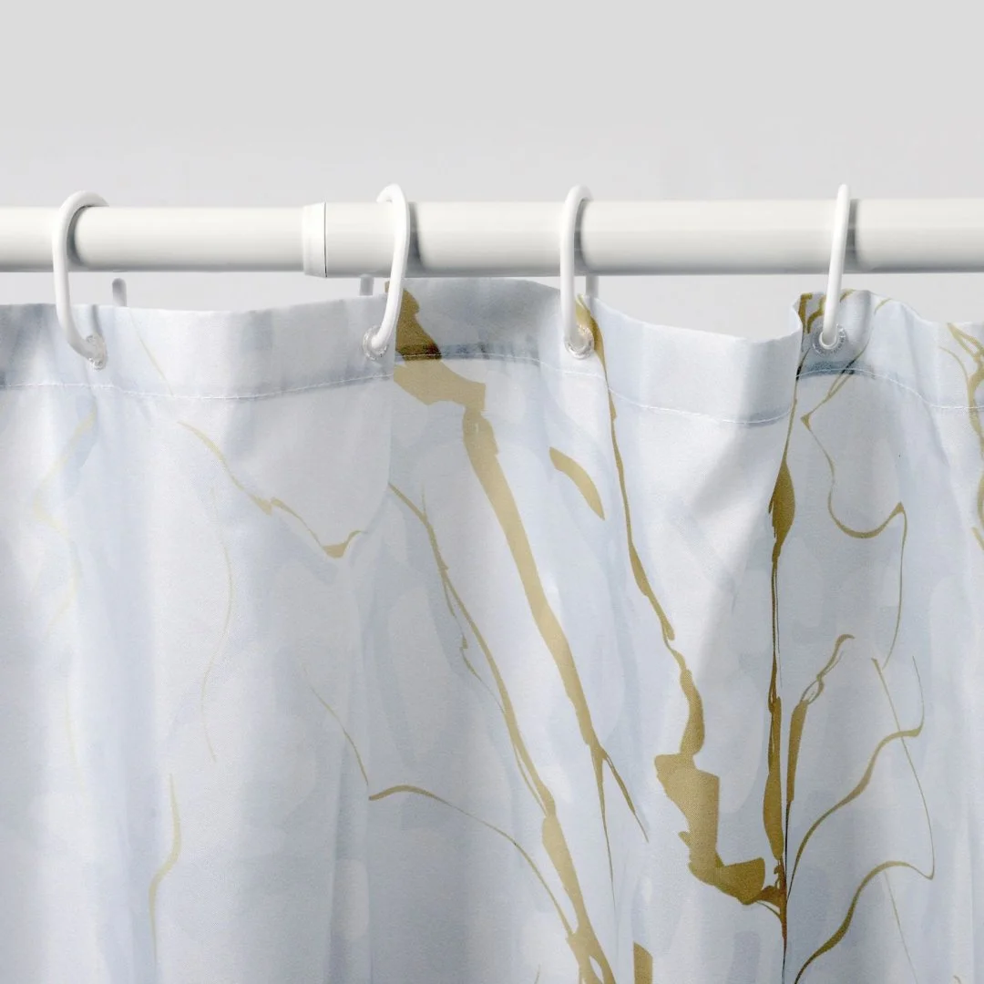 Назначение: Шторка для ванной. Материал: Полиэстер.Монтаж: Пластиковые люверсы. Описание: Размер 1800 х 2000 мм, водоотталкивающая пропитка. Низ шторки оснащен утяжелителем, в комплект входят ластиковые кольца белого цвета, 12 шт. Плотность шторки 90 г/м² Дополнительно: Шторки можно стирать в стиральной машине. Температура не должна превышать 40 градусов.