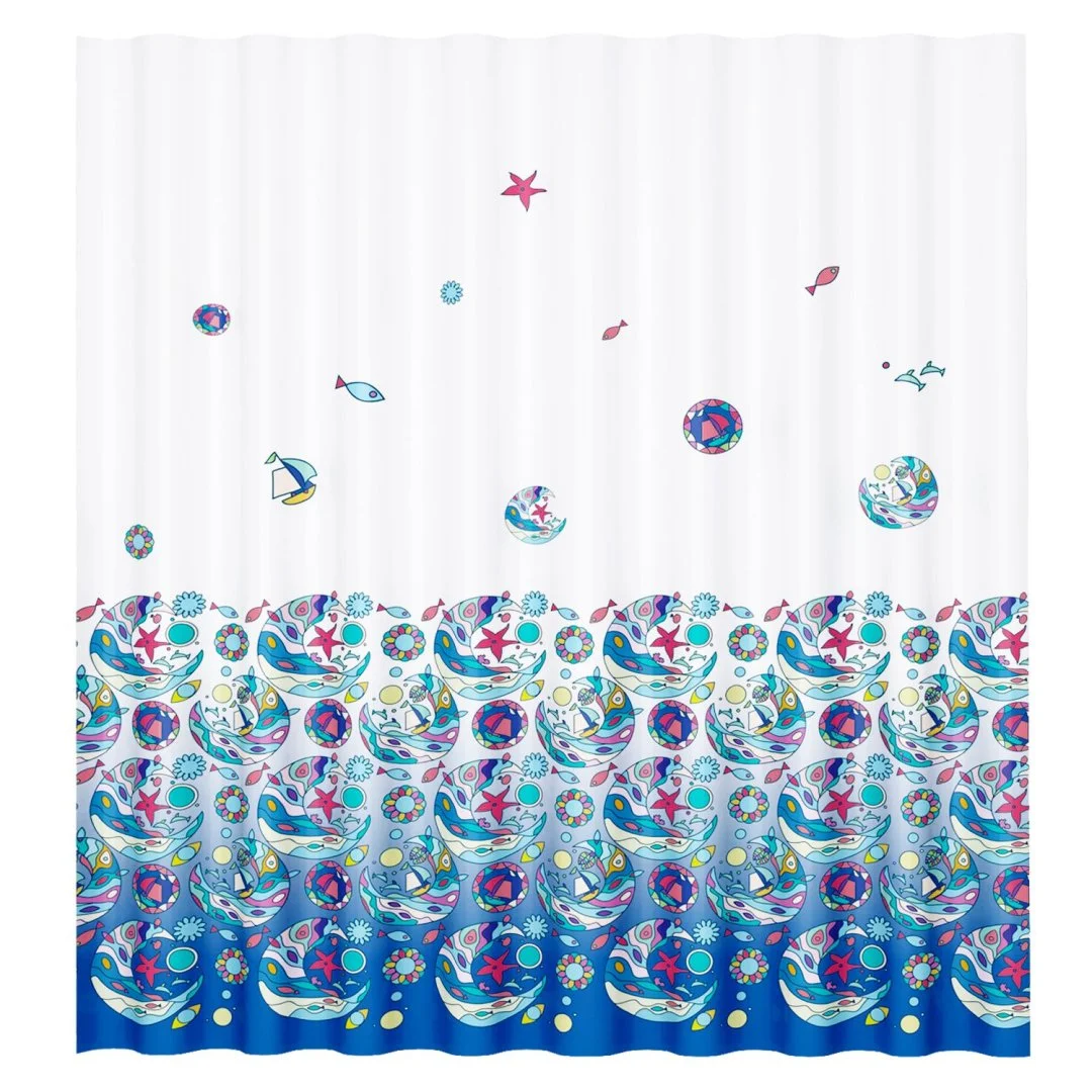 Назначение: Шторка для ванной. Материал: Полиэстер.Монтаж: Пластиковые люверсы. Описание: Размер 1800 х 2000 мм, водоотталкивающая пропитка. Низ шторки оснащен утяжелителем, в комплект входят ластиковые кольца белого цвета, 12 шт. Плотность шторки 90 г/м² Дополнительно: Шторки можно стирать в стиральной машине. Температура не должна превышать 40 градусов.