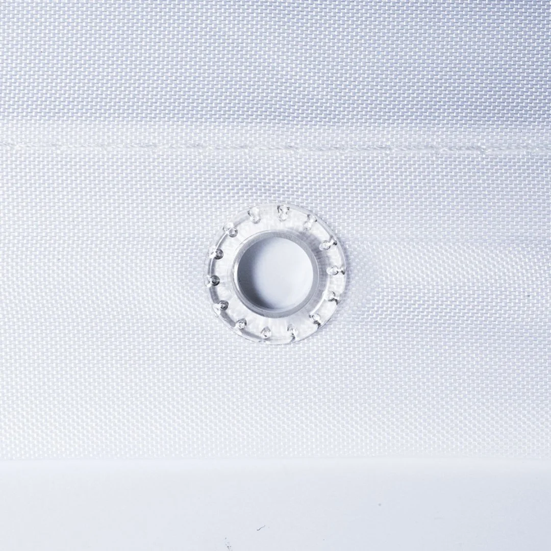 Назначение: Шторка для ванной. Материал: Полиэстер.Монтаж: Пластиковые люверсы. Описание: Размер 1800 х 2000 мм, водоотталкивающая пропитка. Низ шторки оснащен утяжелителем, в комплект входят ластиковые кольца белого цвета, 12 шт. Плотность шторки 90 г/м² Дополнительно: Шторки можно стирать в стиральной машине. Температура не должна превышать 40 градусов.