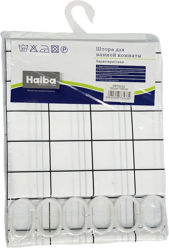 Шторы для ванны Haiba имеет 12 пластиковых колец в комплекте. При изготовлении используется экологически чистый и приятный на ощуп материал. Шторы отличаются повышенной водонепроницаемостью.