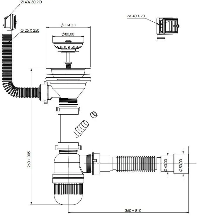 Сифон для кухни Aquanet 3 1/2'' 00372022 с переливом, с подключением к стиральной машине, белый