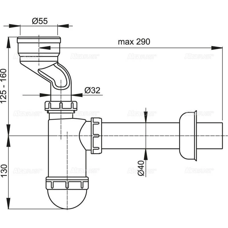 Подключение к канализационной трубе Ø40 мм Материал: полипропилен